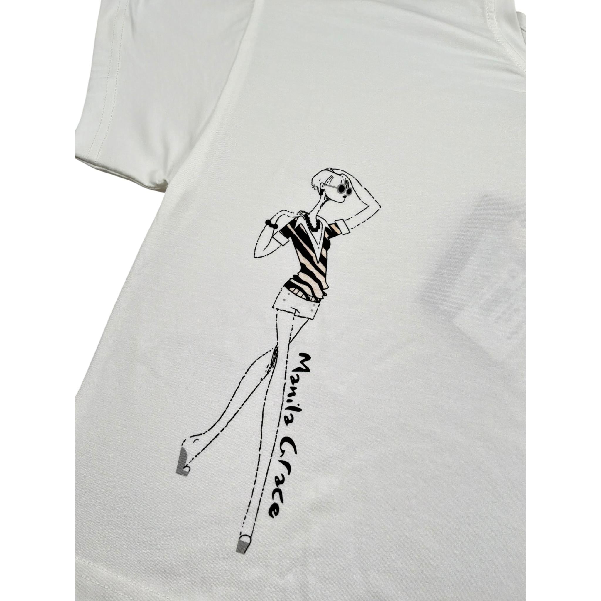 Manila Grace T-Shirt Girocollo Tinta Unita con Stampa per Bambina