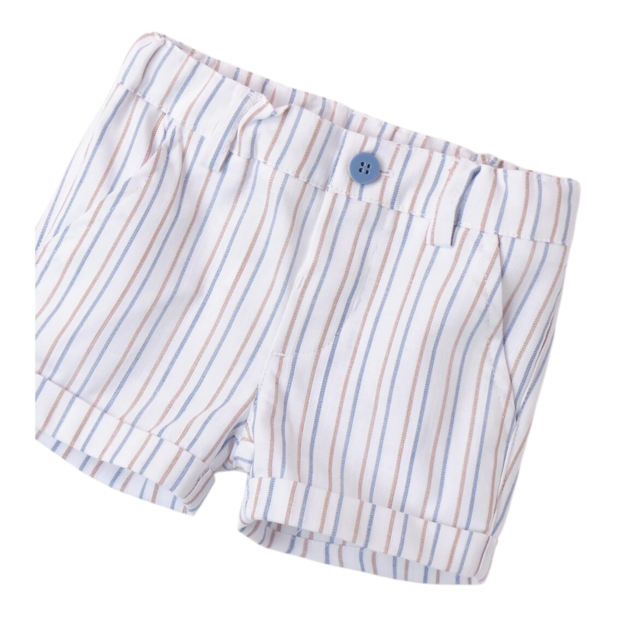 Minibanda Bermuda Tinta Unita con Fantasia A Righe per Neonato
