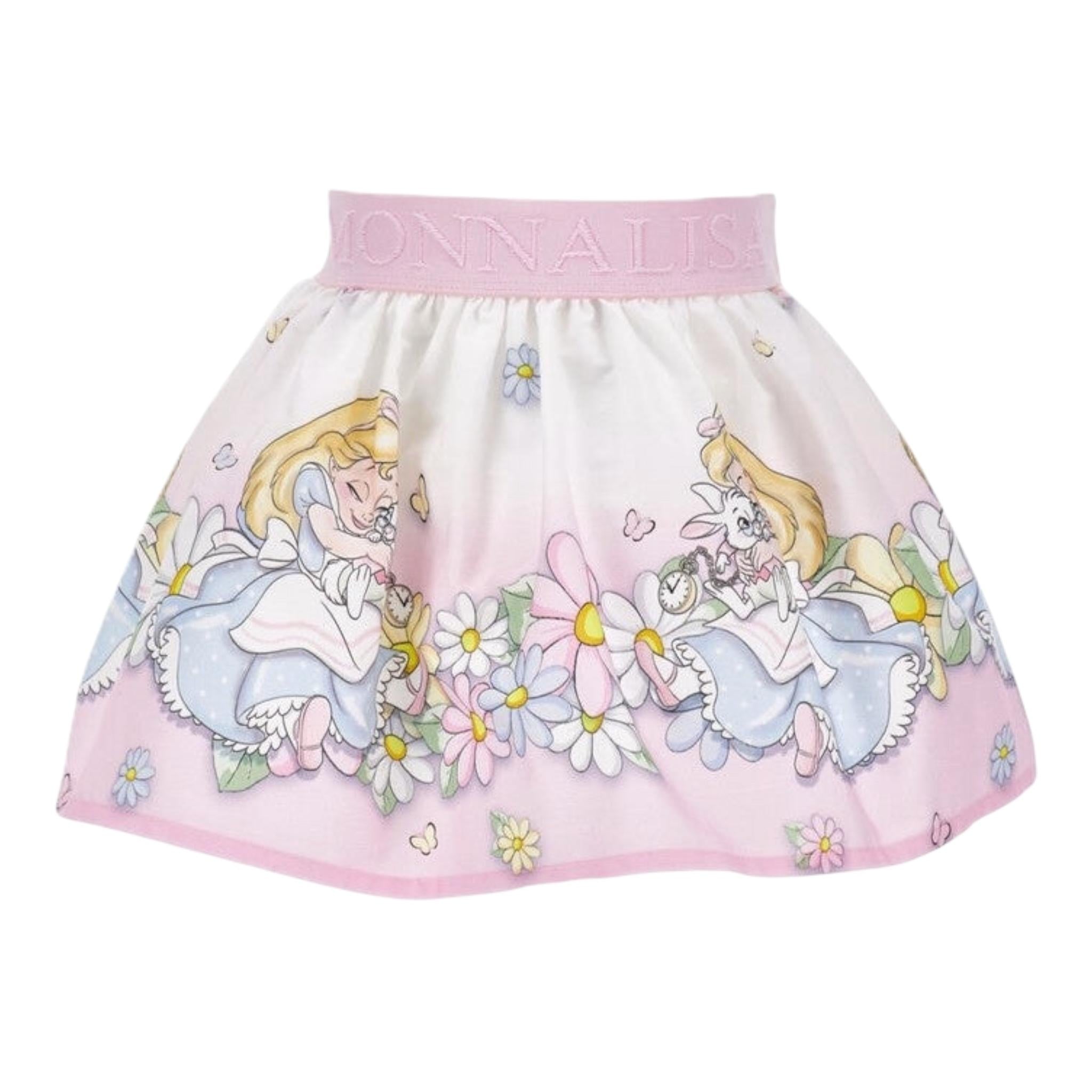Monnalisa Gonna Tinta Unita con Stampa 'Alice Nel Paese Delle Meraviglie' per Neonata 31E703 ROSA MONNALISA