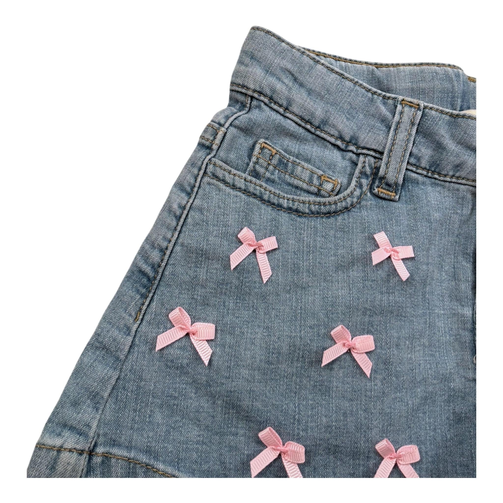 Please Short In Denim Tinta Unita con Fiocchi per Bambina