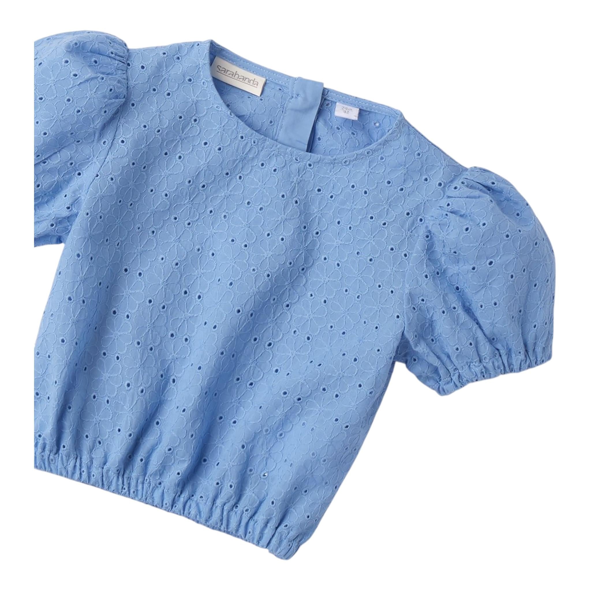 Sarabanda Top Tinta Unita Traforato per Bambina 0B357 AZZURRO SARABANDA