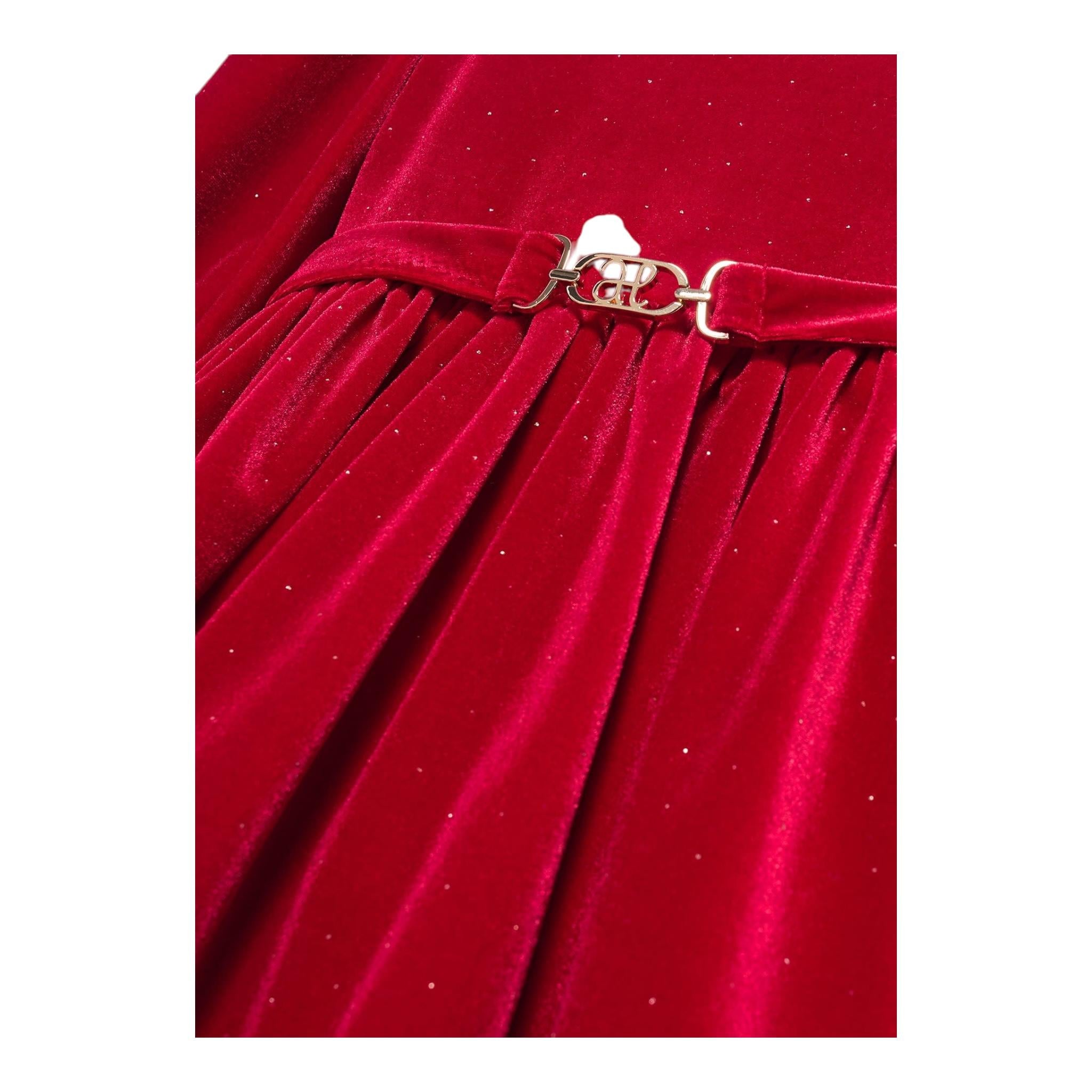ABEL & LULA abito in velluto tinta unita con cintura Rosso per Bambina