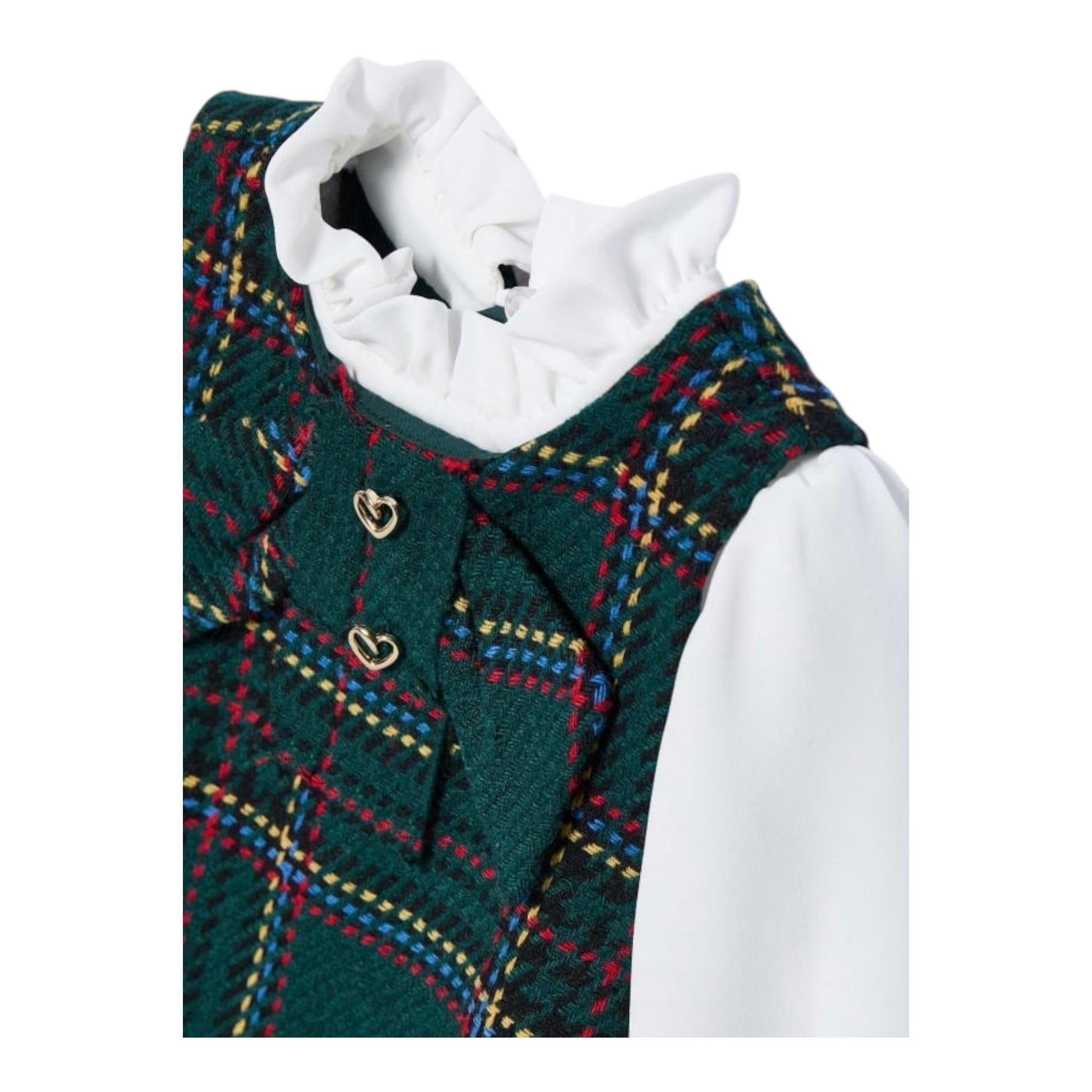 ABEL & LULA abito tinta unita con finta camicia e fantasia Verde per Neonata