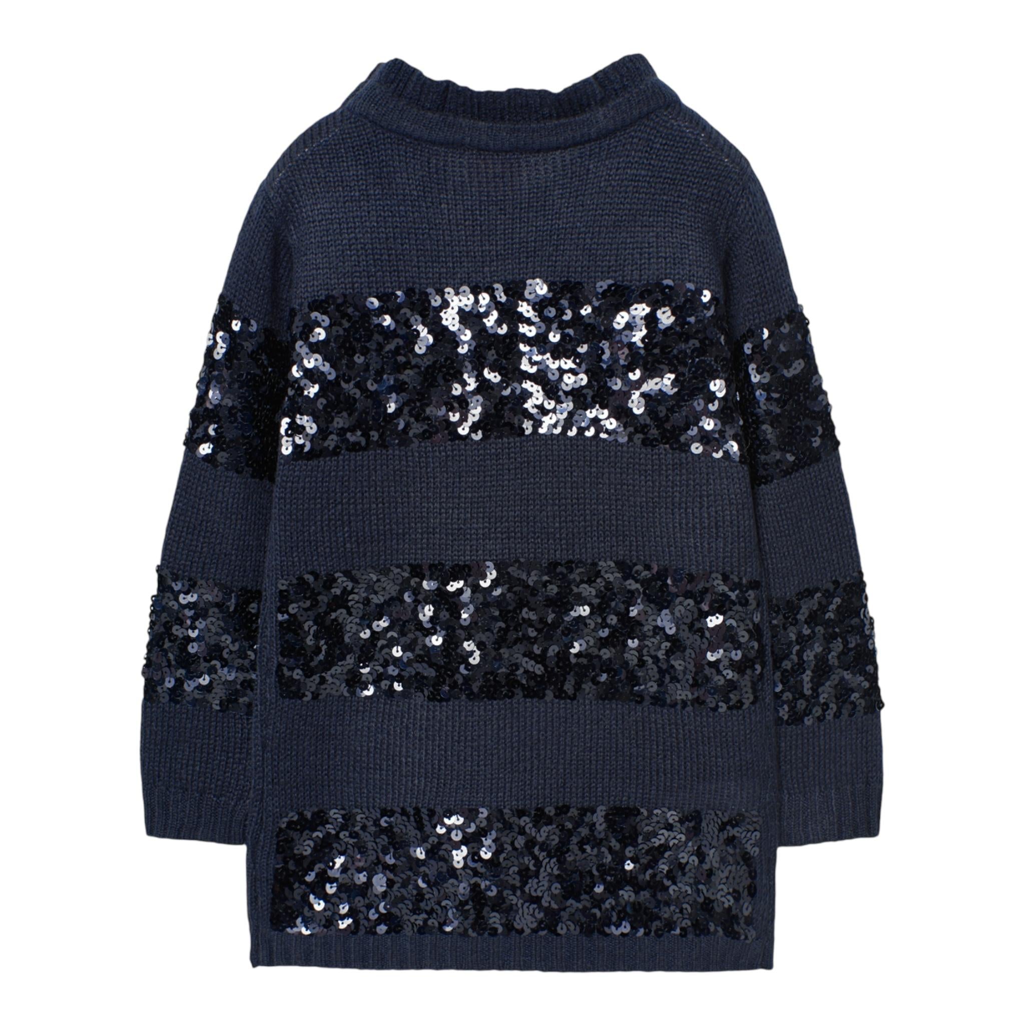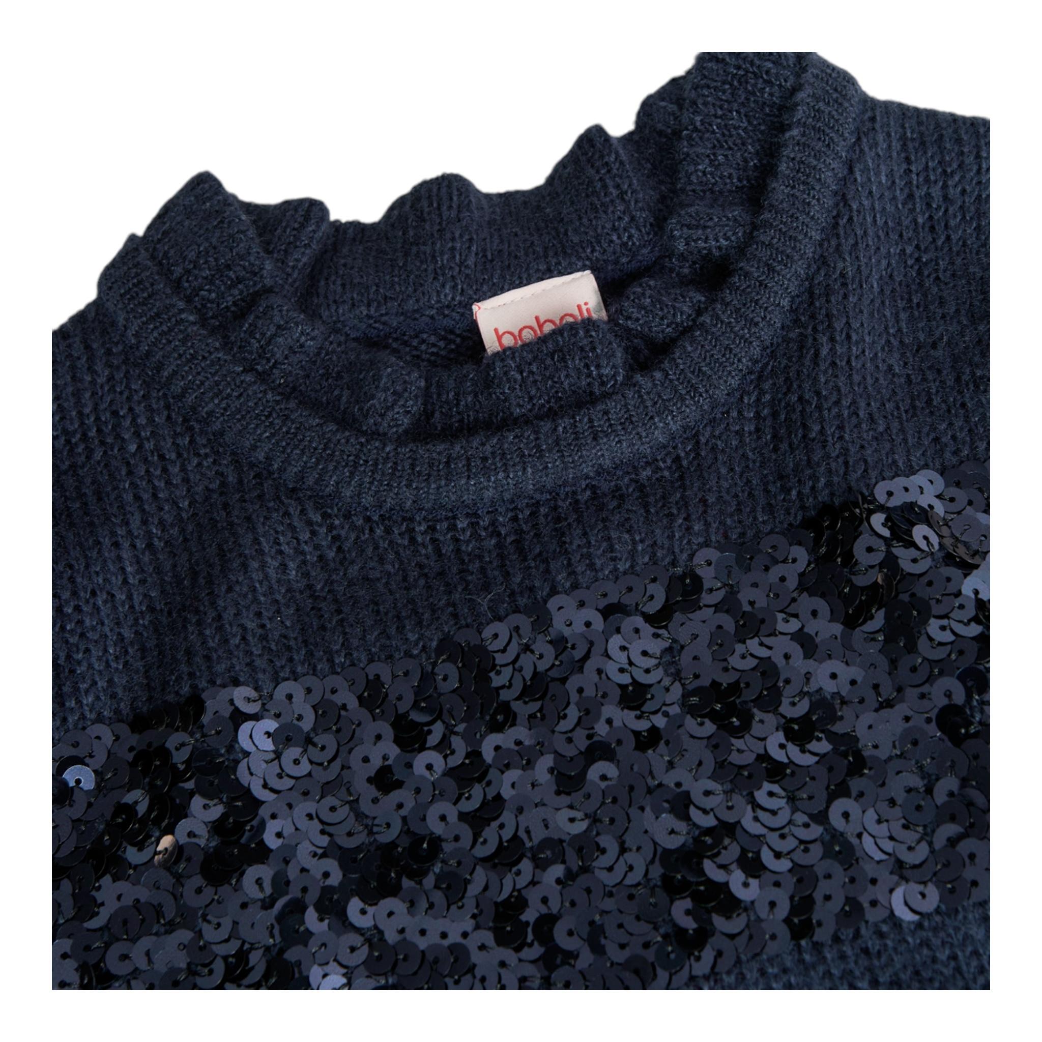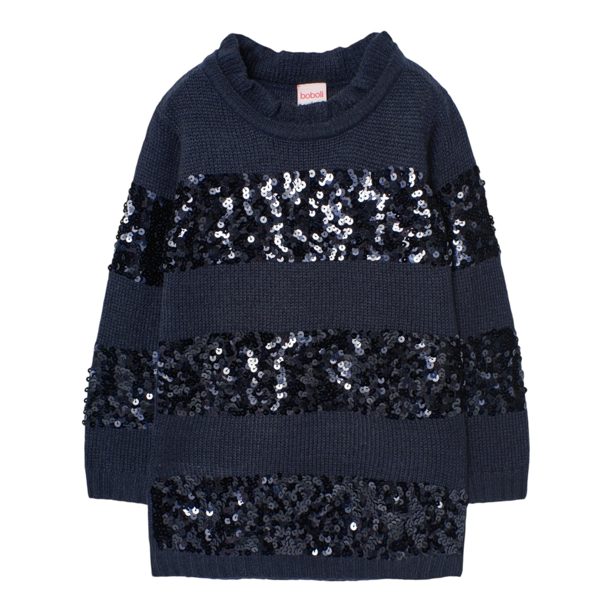 BOBOLI abito in maglia girocollo tinta unita cn paillttes Blu per Bambina