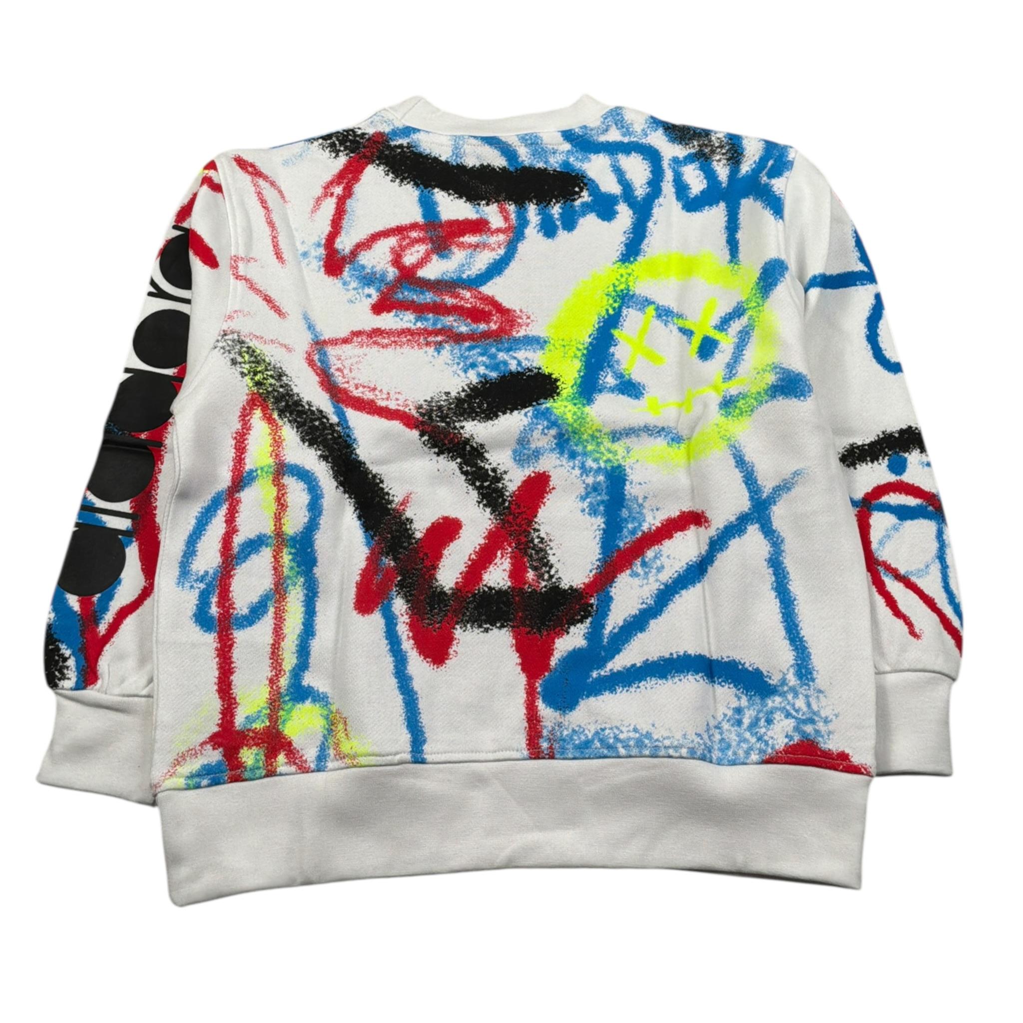 Diadora Felpa Chiusa Girocollo tinta unita con Stampe Bianco per Bambino
