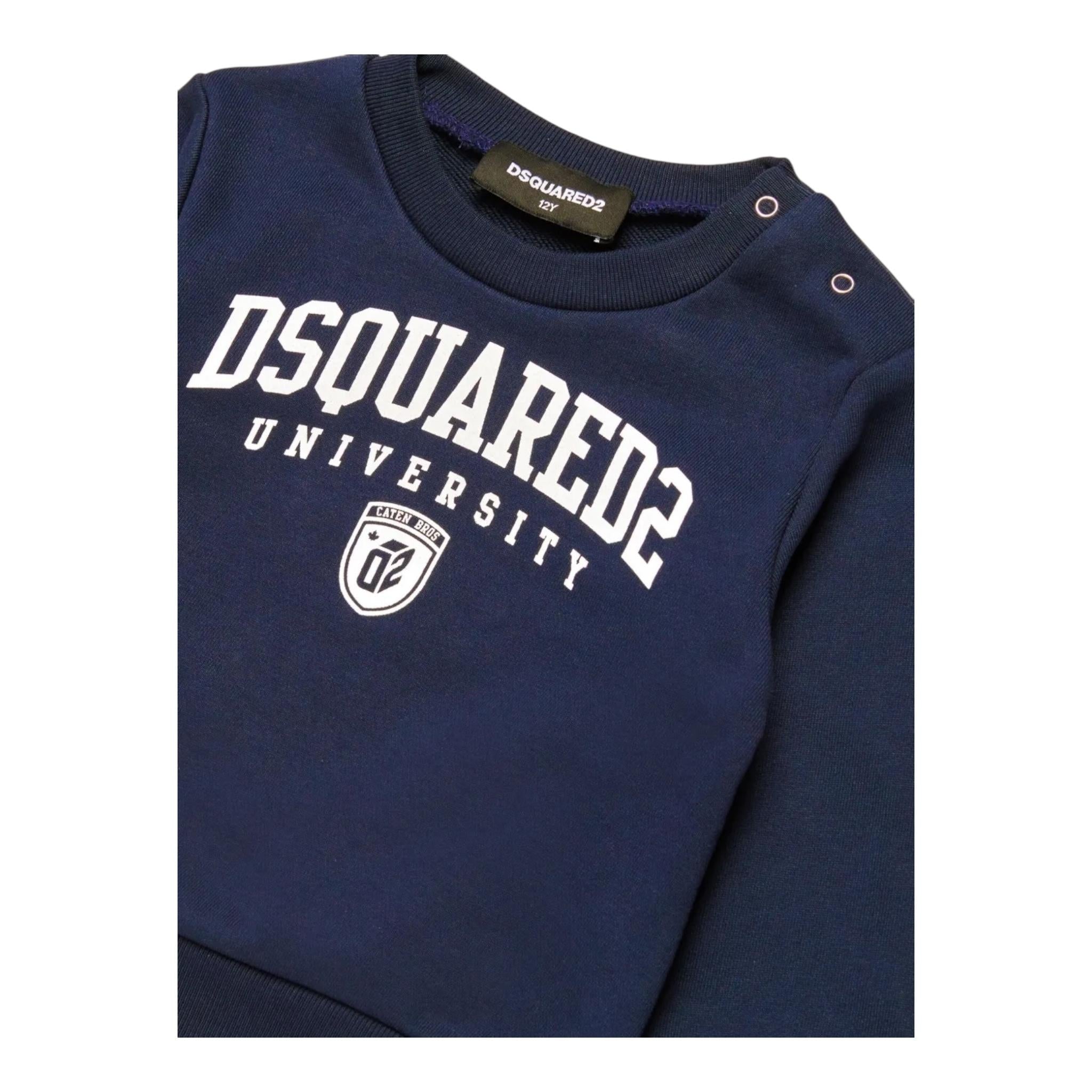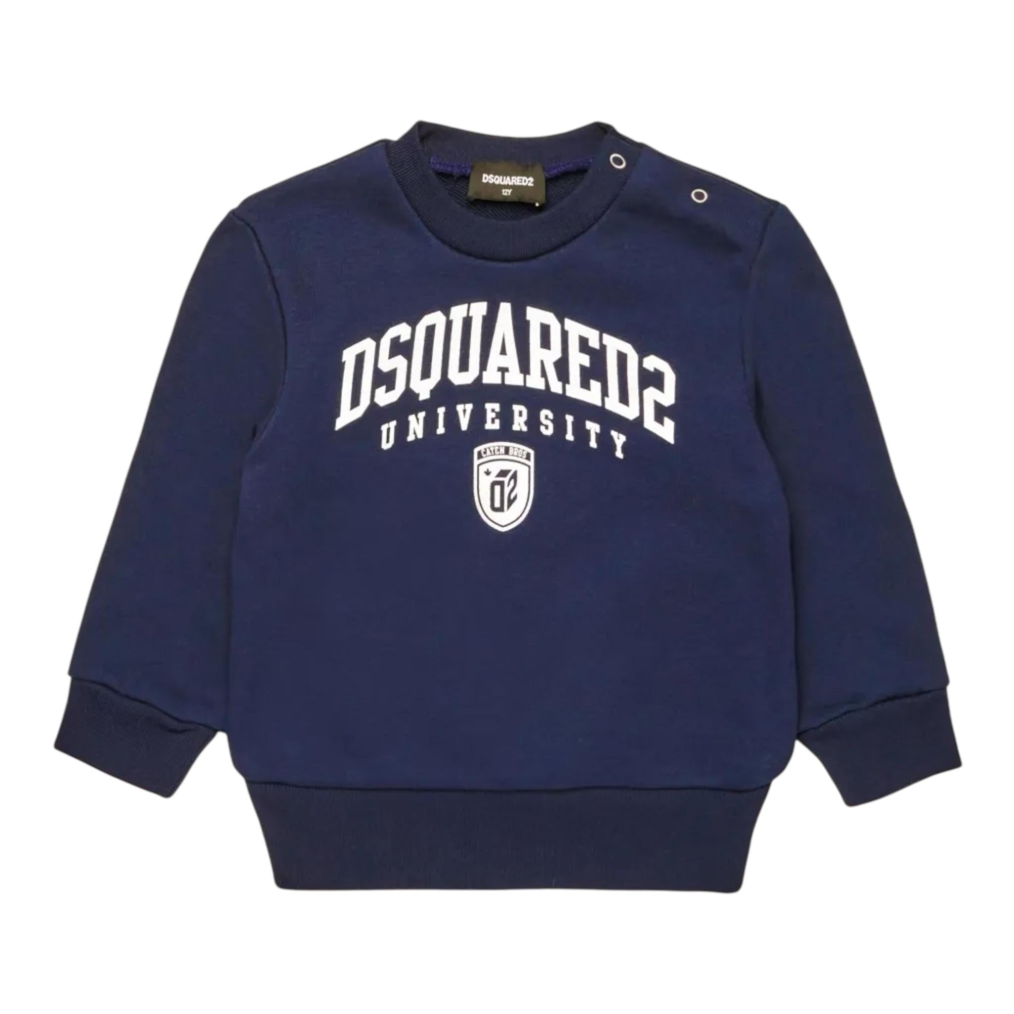 DSQUARED2 felpa chiusa girocollo tinta unita con logo Blu per Neonato DQ2501 BLU DSQUARED2