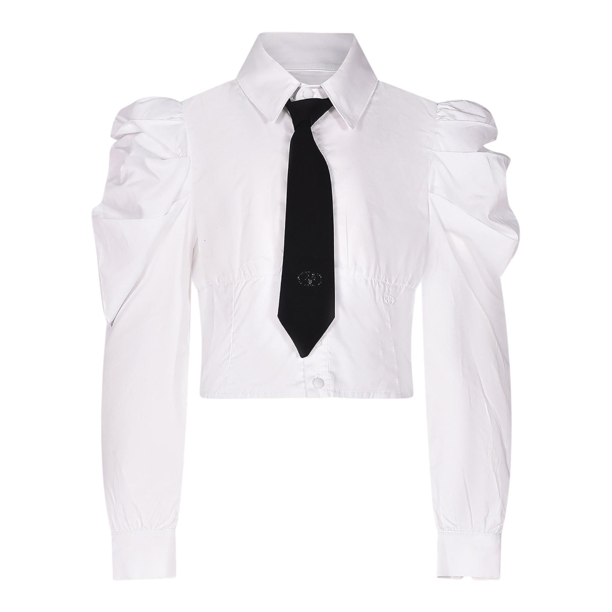 FUN & FUN camicia manica lunga tinta unita con cravatta Bianco per Bambina