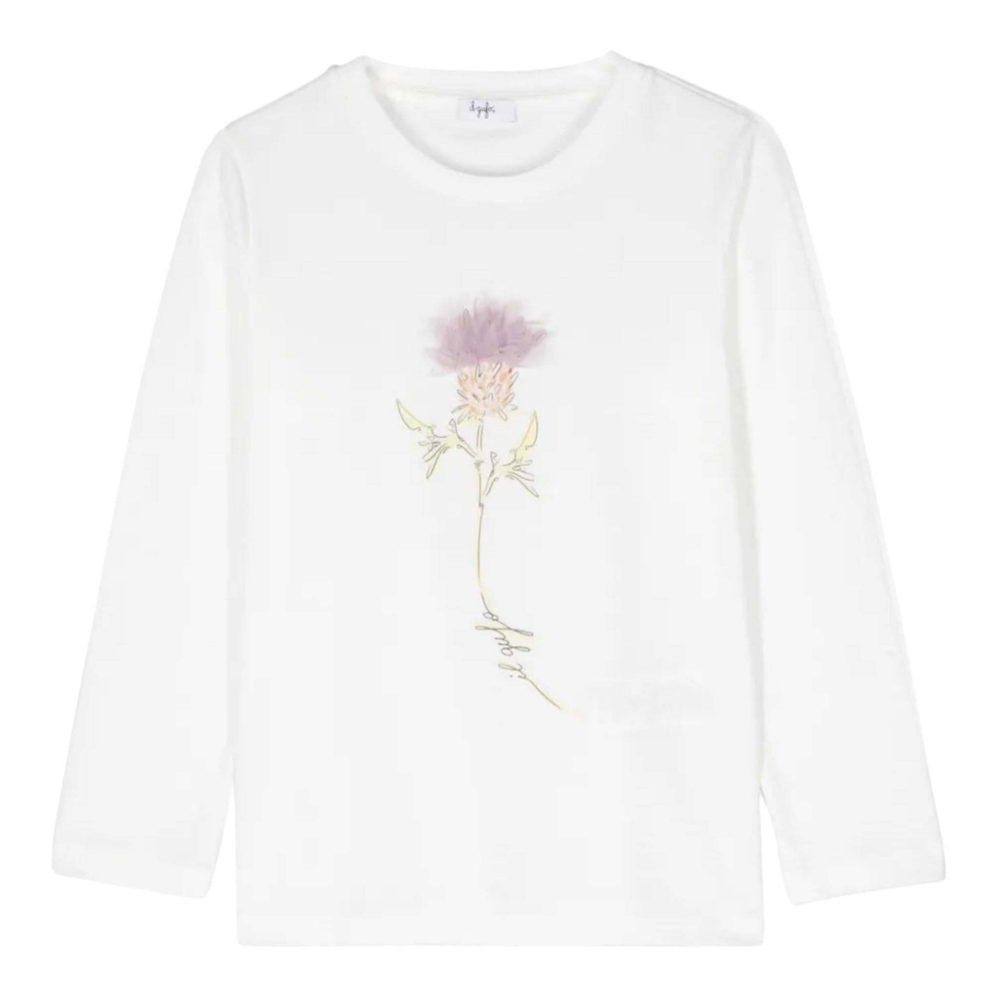 IL GUFO shirt girocollo tinta unita con stampa Bianco per Bambina