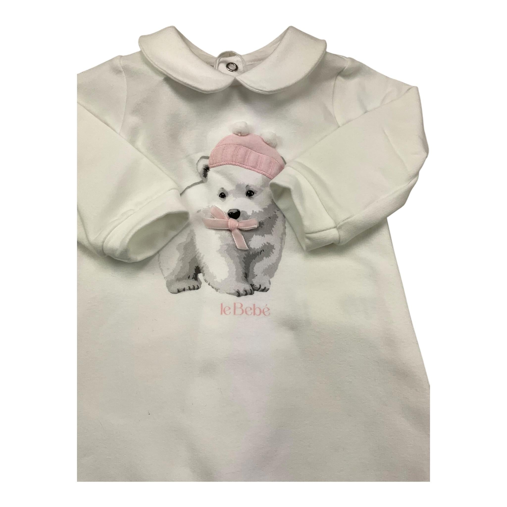 LE BEBE' tutina manica lunga tinta unita con orso Bianco per Neonata