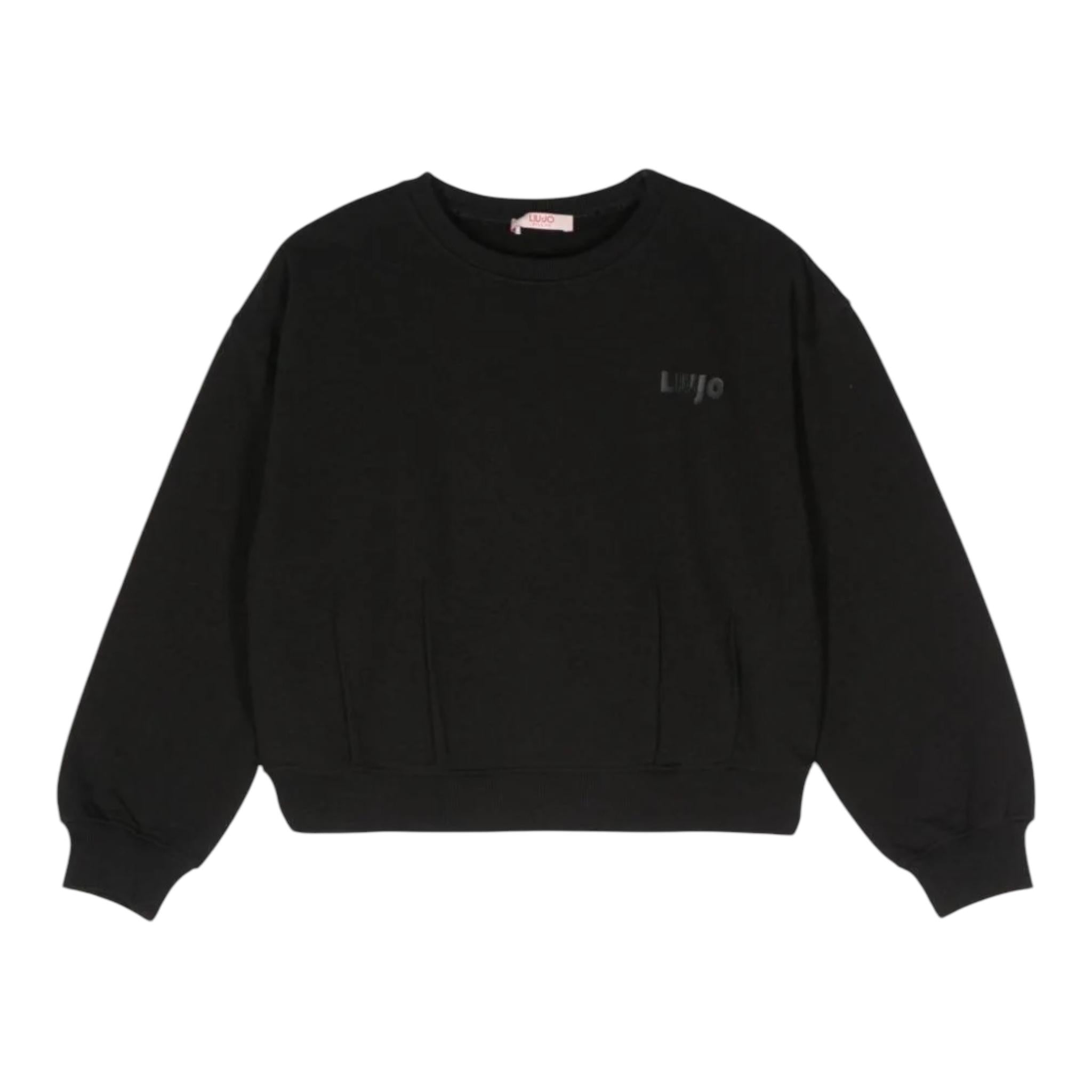 LIU JO felpa chiusa girocollo tinta unita con stampa Nero per Bambina