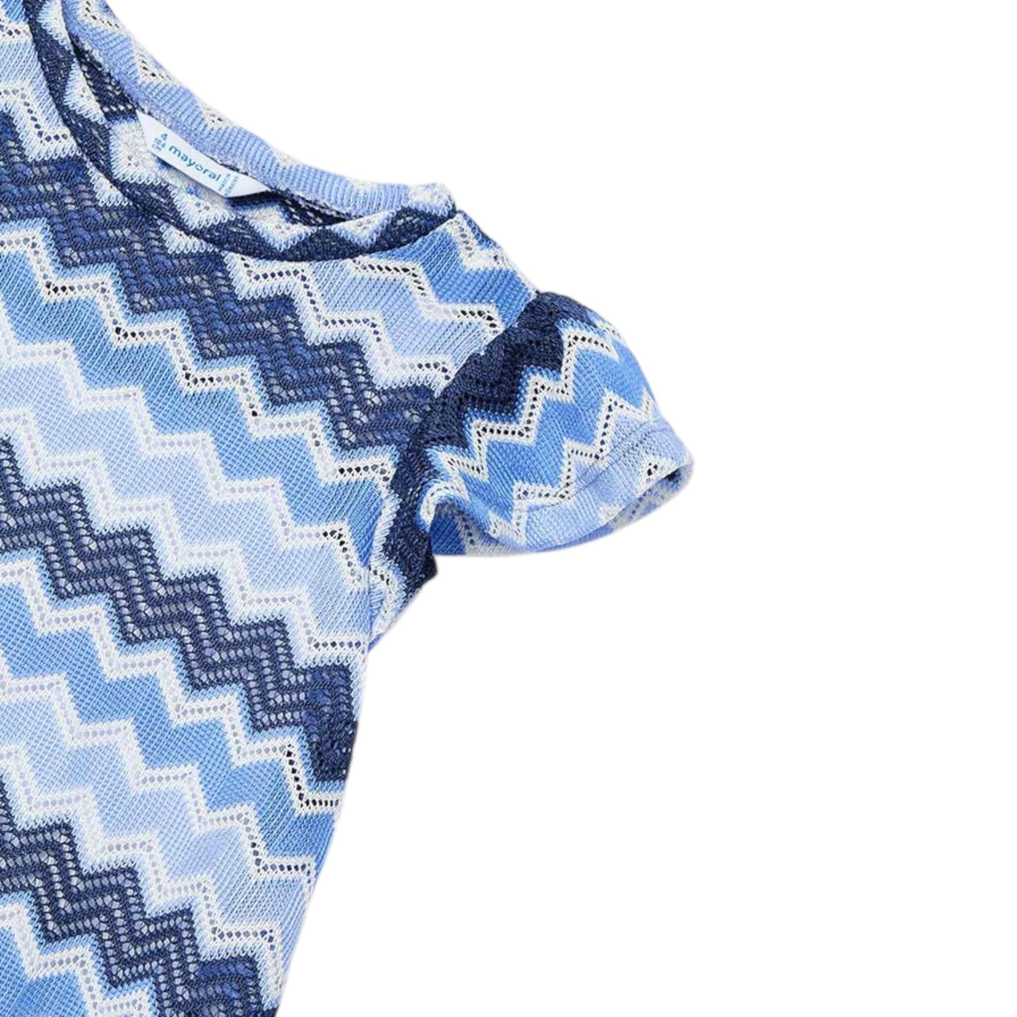 Mayoral Abito Tinta Unita con Fantasia Mezza Manica per Bambina
