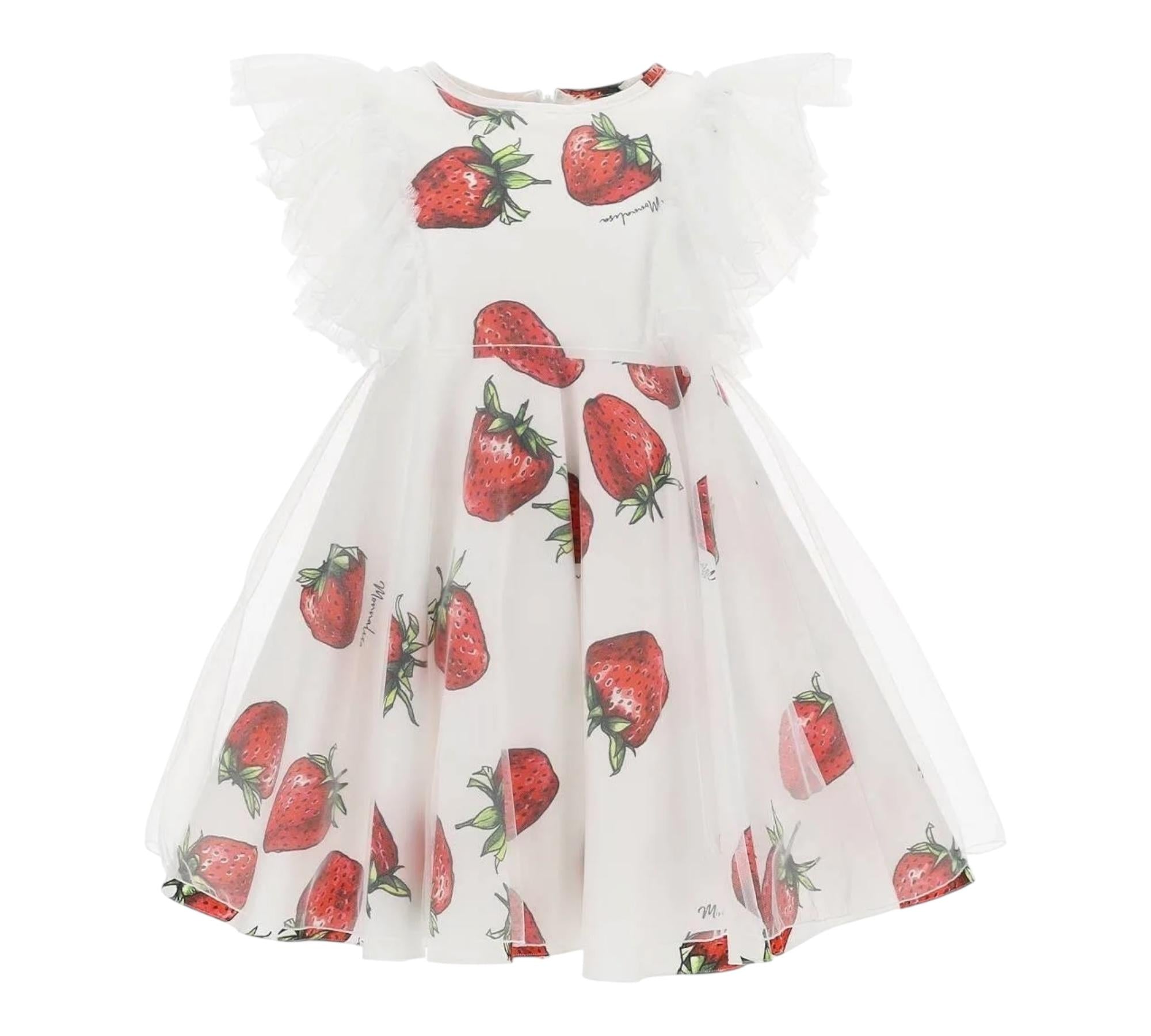 Monnalisa Abito Giromanica Tinta Unita Fantasia Fragole per Bambina