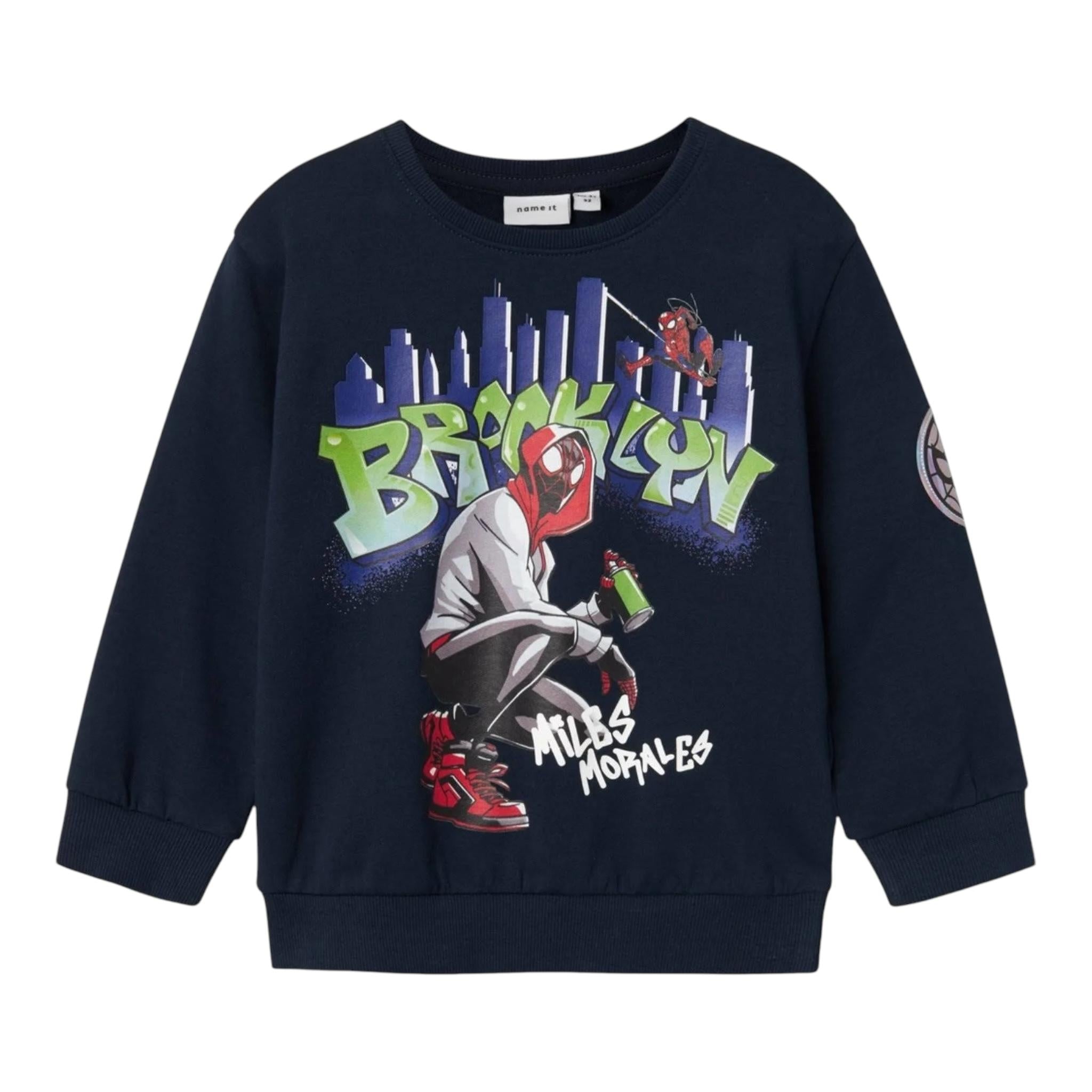 NAME.IT felpa chiusa girocollo tinta unita con stampa in contrasto Blu per Neonato