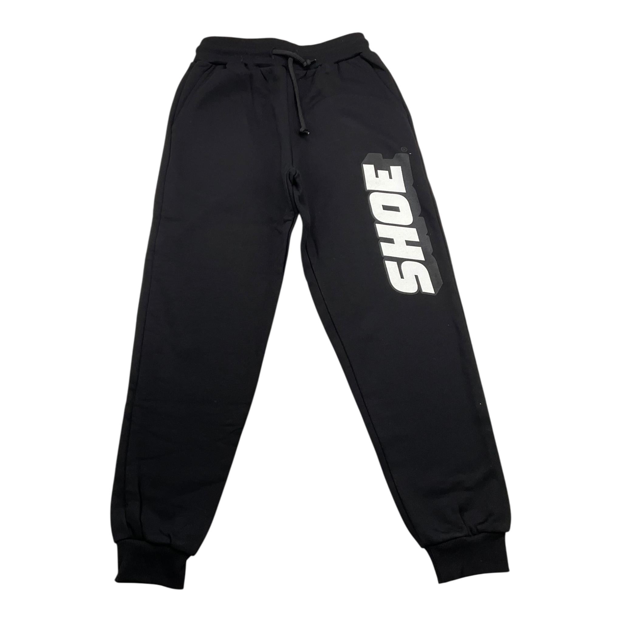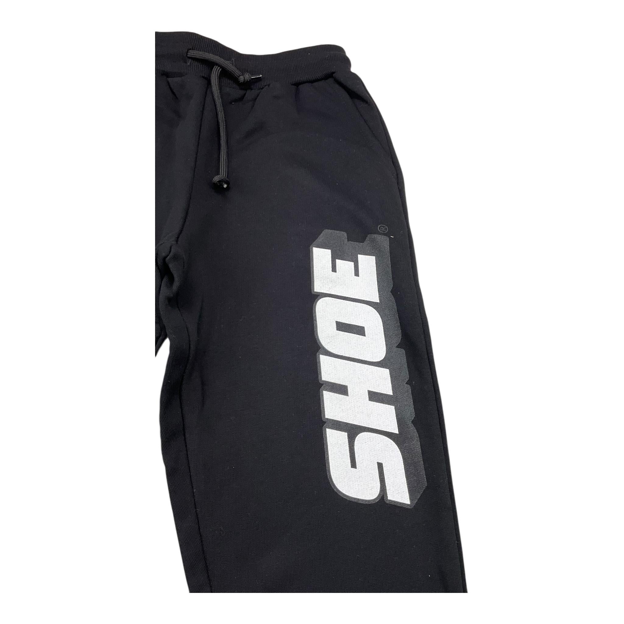 SHOE pantalone tuta tinta unita con stampa in contrasto firmata SHOE. Realizzata in: 100% cotone. Articolo per: Bambino